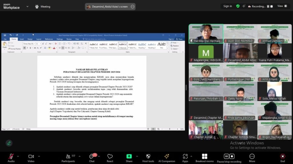 demo.desamind.id/– Surakarta (27/04) Dalam rangka memperkuat gerakan pemuda desa di seluruh penjuru nusantara, Kementerian Pemuda dan Olahraga Republik Indonesia (Kemenpora RI) melalui Deputi Bidang Pelayanan Kepemudaan, Dr. Drs. Yohan, M.Si, membuka Pelantikan Perangkat Chapter Desamind Indonesia Periode 2025/2026 secara resmi melalui virtual zoom meeting. Pelantikan ini diikuti oleh 269 perangkat chapter yang tersebar dari Sabang hingga Merauke.