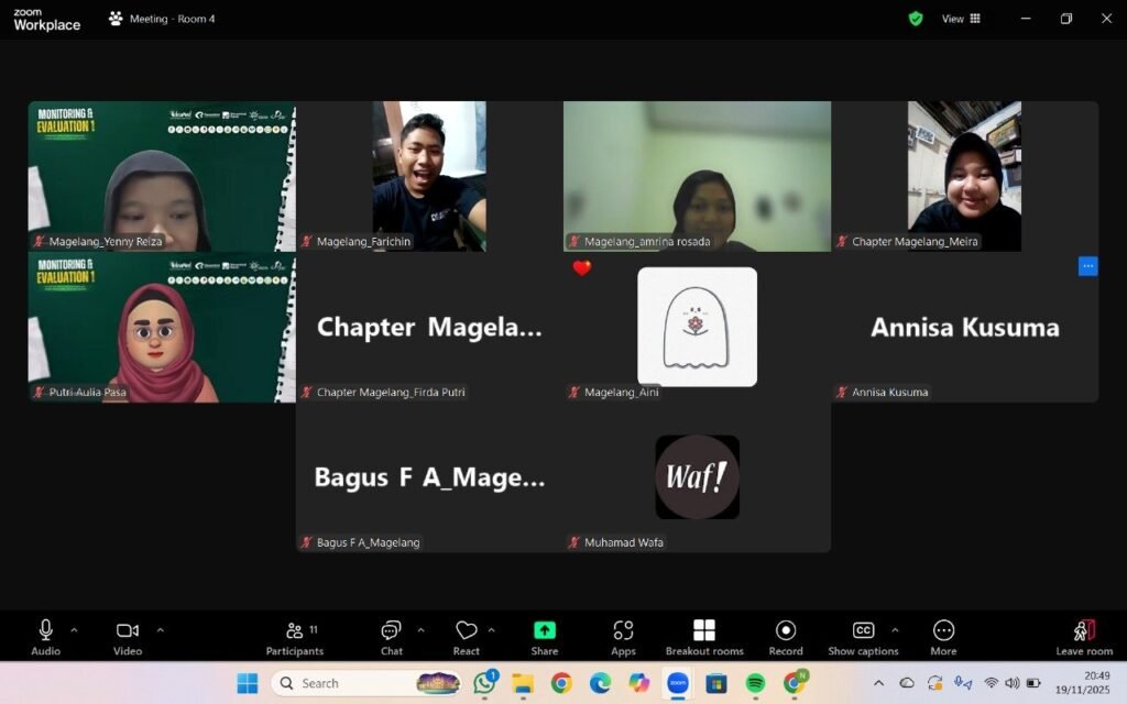 Adapun pelaksanaan Monev dilakukan dengan cara membagi peserta ke dalam breakout room. Sesi diskusi berlangsung selama kurang lebih 45 menit dengan menyampaikan capaian dan tantangan chapter, pendalaman kondisi bersama auditor, dan penyusunan Permasalahan, Tindakan, Penanggung Jawab, Penyelesaian (PTPP).